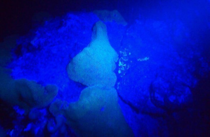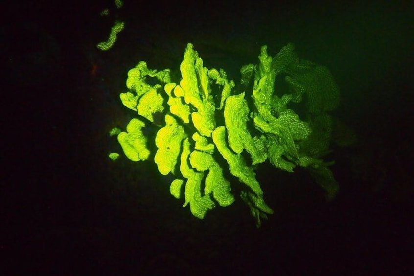 FLUORESCENT NIGHT DIVING – A DIVE CHANGING EXPERIENCE! Even the most seasoned divers respond with amazement to their first fluorescent night dive. The reef is simply another world all of a sudden. Terms often used to describe the experience are; “Extraterrestrial”, “Disco diving” and “a different dimension”. Fluorescence is a completely passive phenomena that occurs in some aquatic creatures. It costs them no energy, and the evolutionary purpose of the reaction is still not fully understood by scientists. What is known is that some aquatic animals and corals simply glow when a specific wavelength of light is shone on them, while others look no different than they do on a normal night dive. Coral conservationists use the fluorescence to identify “coral recruits” on reefs. Coral recruits are coral polyps that have attached themselves to the reef substrate to form a new colony. They are tiny and hard to see during the daylight, but are very visible during a fluorescent dive as bright little dots. The dive will be at The Hole in the Wall.