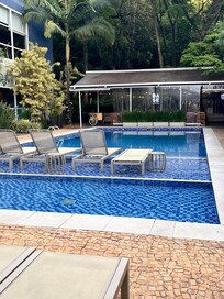 Novotel São Paulo Morumbi offers a family-friendly retreat with an outdoor pool, sun loungers, umbrellas, and a garden. Enjoy the billiards table and arcade room after shopping. Attentive staff ensures all needs are met.