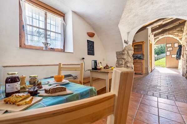 This holiday home offers access to a shared outdoor area with a garden and barbecue facilities. Depending on availability, you can purchase some products from the farm. The nearest shops are in Ala (9 km), while restaurants are in Sega di Ala (5 km). There are 7 parking spaces on the property. Pets and smokers are not allowed. Breakfast with local and farm products is available on weekends and during July and August, and can be booked on site for an extra fee. The property offers homemade or homegrown products. Guidelines are provided to help you properly separate waste, with further information available on site. Water and electricity-saving devices are in use, with some electricity generated by photovoltaic panels.