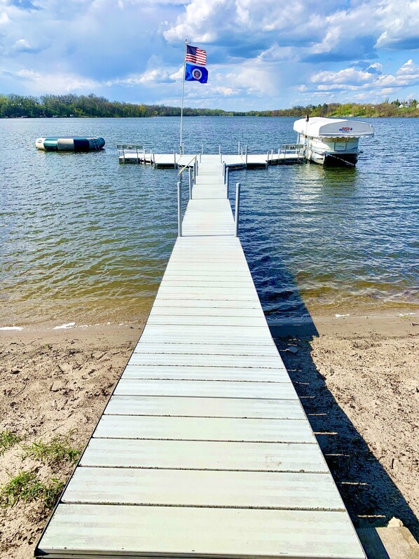 Perfect family getaway just two hours out of the Twin Cities! Sandy beach, 22 foot Weeres pontoon, water trampoline, clean lake, volleyball court and more, you'll never be bored at The Lake House!