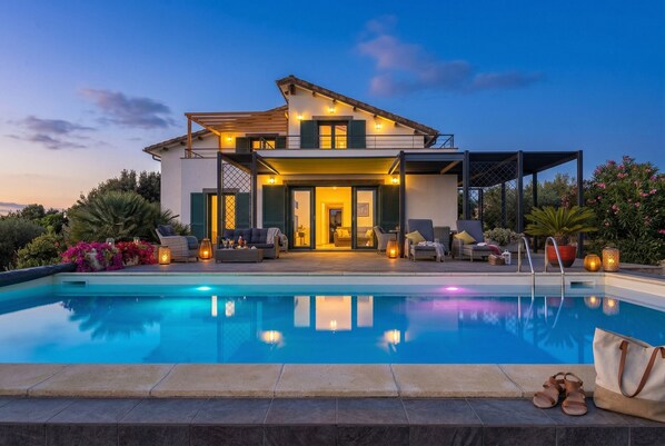 The very comfortable swimming pool, located very close to the villa, becomes almost one with the house itself.