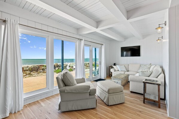 Inside, this coastal gem boasts a wood-burning fireplace, a cable-equipped TV, and wireless internet, providing the perfect blend of modern convenience and beachfront serenity. The full kitchen invites culinary creativity, and the spacious patio area, complete with a Weber charcoal BBQ (folding table and chairs conveniently stored in a locked closet), is your personal oasis for relaxation. Here, you can bask in the soothing ambiance, watch the kids play in the sun-kissed sand, and immerse yourself in a good book while the rhythmic waves provide a melodic backdrop.
