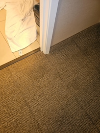 Multiple stains on carpet, that wasn't vacuumed in a while.