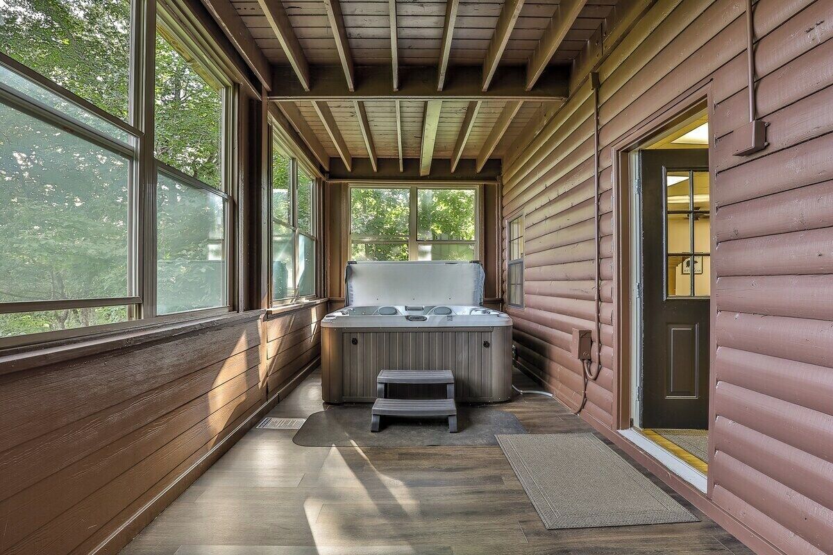 Soak away your day of fun in the large, 6-person Jacuzzi hot tub. The private hot tub has a great view of the property and will be sure to relax you.