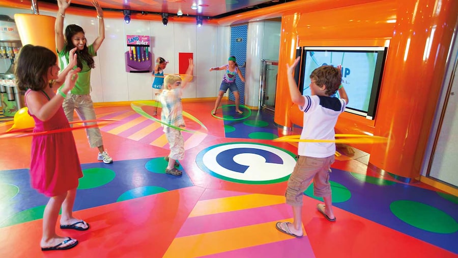 At Camp Ocean kids will have a blast in supervised, age-based groups: Penguins (2 to 5 years), Stingrays (6 to 8 years) and Sharks (9 to 11 years). They'll enjoy age-appropriate activities like arts and crafts, games, dancing, movies and video games. When it’s mealtime, kids eat together and get their own kid-friendly menus. The whole time, Carnival's experienced counselors will be there to make sure everyone in these groups has an awesome time. For a nominal charge, parents can take advantage of the additional Night Owl program, where kids get to stay up late having fun while parents can also enjoy themselves well into the night.