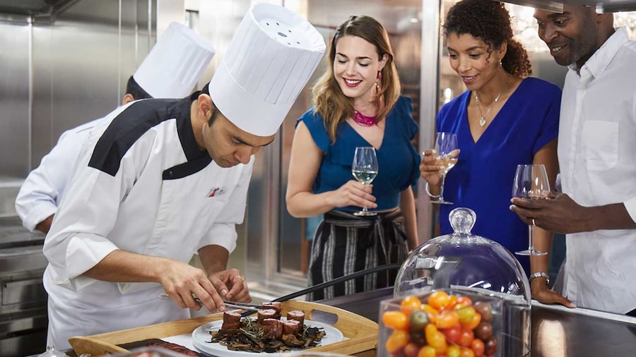 In addition to the main dining options and 24-hour Room Service available onboard, guests can enjoy a variety of cuisines. Savor the deliciously authentic Mexican cuisine at the BlueIguana Cantina, or stop by Guy's Burger Joint - celebrity chef Guy Fieri's own restaurant at sea. For a ‘treat yourself’ moment, check out The Chef's Table, which features a private tour of the kitchen and a meal featuring the chefs' finest dishes.