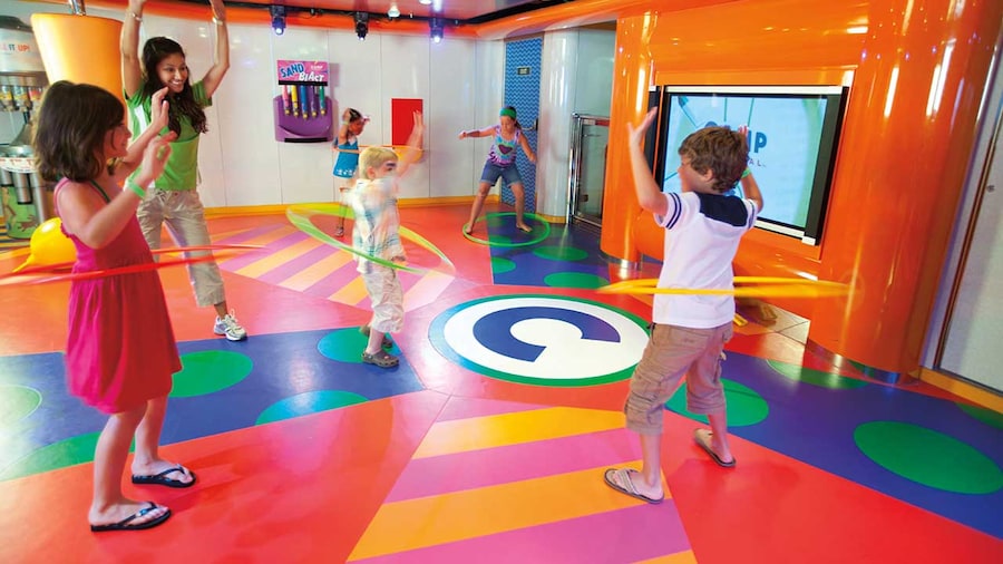 At Camp Ocean kids will have a blast in supervised, age-based groups: Penguins (2 to 5 years), Stingrays (6 to 8 years) and Sharks (9 to 11 years). They'll enjoy age-appropriate activities like arts and crafts, games, dancing, movies and video games. When it’s mealtime, kids eat together and get their own kid-friendly menus. The whole time, Carnival's experienced counselors will be there to make sure everyone in these groups has an awesome time. For a nominal charge, parents can take advantage of the additional Night Owl program, where kids get to stay up late having fun while parents can also enjoy themselves well into the night.