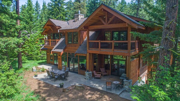 This grand, lodge-style home boasts a large gas fireplace in the great room, soaring 25 foot ceilings, a gourmet kitchen with additional prep sink, restaurant quality gas range, and a second oven. The home has a total of 4.5 bathrooms, a large patio with gas BBQ, and views of the golf course from the two upper level decks.