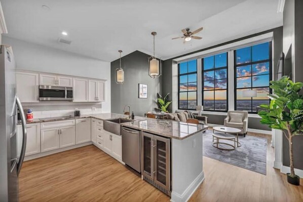 ★ KITCHEN & DINING ★ Cook and dine in style with premium appliances and modern finishes, or enjoy the convenience of the on-site restaurant just downstairs.