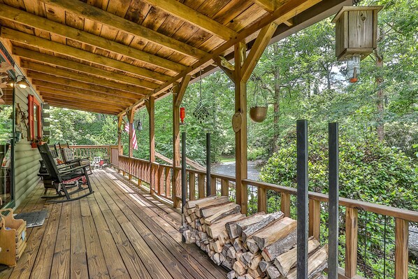 When it gets cold outside, relax in a rocking chair in front of a real wood burning stove. Firewood is provided.