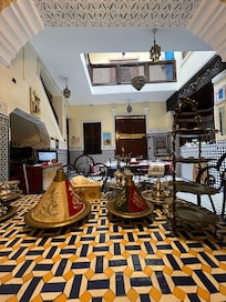 Located in the heart of Fes El Bali, Dar el Mathaf provides a peaceful retreat from the bustling medina. Guests start their day with local cuisine for breakfast, relax in the garden or rooftop terrace, and rejuvenate with spa services including professional massages.