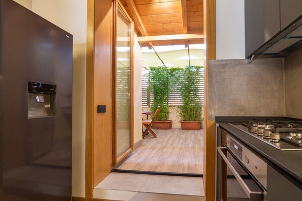 A short walk from Ponte Vecchio and Uffizi Gallery, Industrial design loft with outdoor living terrace provides laundry facilities and more. Stay connected with in-room WiFi.