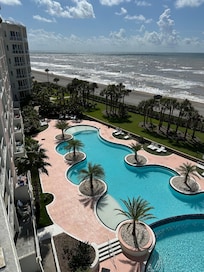 Overlooking the Gulf of Mexico, this beautiful 3-bedroom condo offers direct beach access and a spacious balcony with views of the largest swimming pool in Galveston. Relax in style with a lazy river, outdoor pool, indoor pool, hot tubs and spa. Enjoy entertainment options like a movie theatre and wine room or stay active at the state-of-the-art gymnasium.
