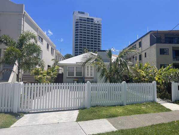 This 1950’s beach house in Surfers Paradise is full of character and charm. Freshly renovated, it features a BBQ area and fenced backyard perfect for kids to enjoy. With the golden sands and sparkling ocean just a short walk away, you can easily spend your days walking the beach or shopping at Pacific Fair.