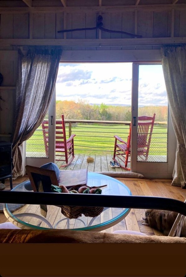 The open-plan interior boasts whitewashed walls and polished hardwood floors, combining to create a rustic vibe in keeping with the surroundings. There are armchairs to kick back on and vintage furnishings. Out on the wooden porch at the front, guests can recline on the outdoor chairs with a drink in hand and take in the sumptuous surroundings. There's plenty of lawn space for the kids to run around while one lucky parent drifts off in the hammock. There are deck chairs centered around the barbecue and fire pit, perfect for afternoon cookouts and evening bonfires. Book your Tennessee vacation today!