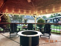 Guests gather around the inviting firepit at this peaceful getaway near Carl Sandburg Home, where nature provides the perfect backdrop for relaxation