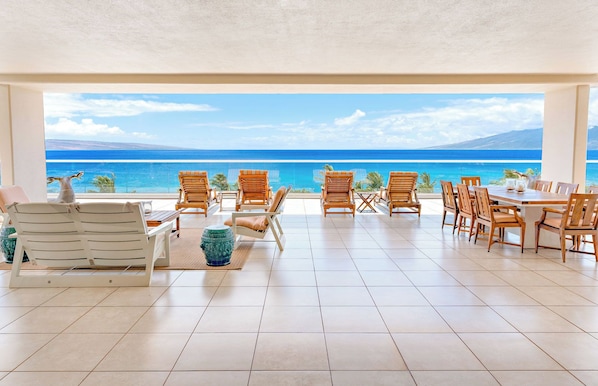 Representing the pinnacle of resort accommodations on Maui, Hokulani 650 is a 3BR/3.5BA oceanfront paradise commanding over 5800 sq ft of indoor/outdoor living area and unparalleled ocean views that extend to nearly every room. Its spectacular 3200 sq ft lanai is the largest available at the entire resort, providing your group an additional outdoor dining area featuring a built-in Viking grill, multiple lounge areas, and awe-inspiring panoramic views of the ocean as well as Maui's neighbor islands Lanai and Molokai.