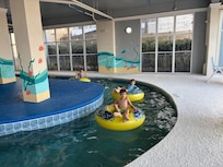 Ocean Blue amenities include a heated indoor pool, lazy river with tubes, hot tub, and an outdoor pool with sunning area with reclining lounge chairs, and a boardwalk to the beach with two showers. Convenient to Market Commons (shopping, dining, and movie theater), Downwind Sails Watersports (banana boat rides, parasailing and jet ski rentals), helicopter rides, Broadway at the Beach, and downtown Myrtle Beach.