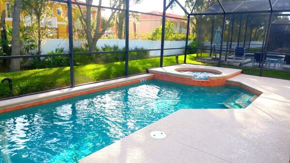 In the heart of Seasons community, this lovely 4 bedroom pool home offers a perfect retreat for your Florida/Disney attractions vacation. With its stylish family room and formal living/dining room, you can relax in comfort while the kids enjoy their own space. Enjoy quality time together on the south-facing pool deck with an integrated Jacuzzi or explore nearby shops and restaurants along US192.