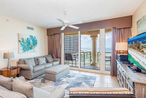 Every room in every Sky Home has a water view. No Sky Home sits below the fifth floor. Spacious and comfortable, each Sky Home is at least twice as wide as a typical beach condo. With private water-view balconies, each is equipped with all the conveniences you'd expect to find in a premier resort, including spacious closets with extra linens and pillows, as well as a dishwasher, washer/dryer and much more. Every room has its own full bathroom plus a half-bath for Sky Home common-area use. Each of Portofino's five Mediterranean-inspired towers features its own exclusive outdoor pool and revitalizing whirlpool spa, plus covered parking for your convenience.