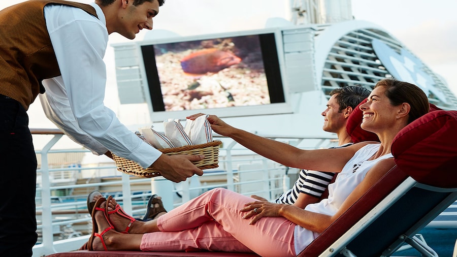 Island Princess also features the Horizon Court and The Bar and Grill, between these two casual dining rooms, guests can always grab a satisfying bite — whenever hunger pains (or just the munchies) strike. Dining is buffet style, and guests can even take their plates to the poolside for an alfresco meal.