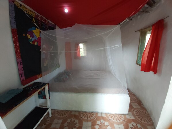 We have 3 Guesthouses. The "Bah" and "Roots" both have Double Beds, Bathrooms with sinks, toilets and showers. The "One Love" Self Catering Guesthouse has both Double and Single Beds and a bathroom as well. It also has a small kitchen with a stovetop cooker and sink. We can accommodate 7 guests.