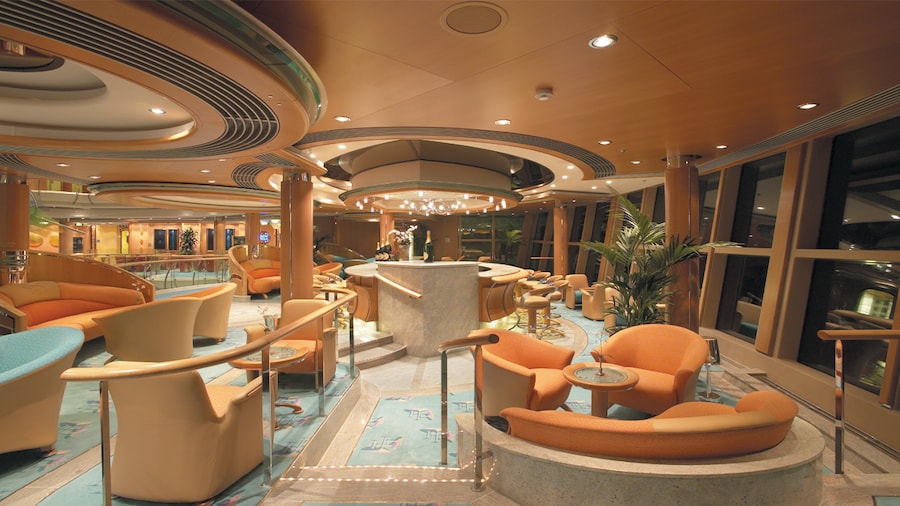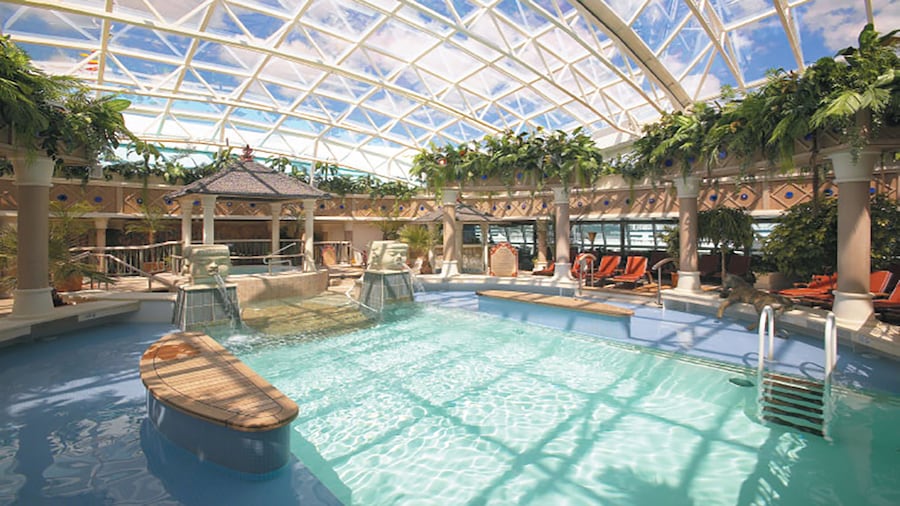 The 2,100-passenger Serenade of the Seas has nearly all the amenities and public spaces of its larger Royal Caribbean counterparts, and yet remains a mid-sized ship with a more intimate feel and excellent service. There are views of the ocean from nearly every public room, even on the glass elevators spread throughout the ship. Serenade is also very easy to navigate and boasts state-of-the-art facilities, plus three pools, six restaurants and cafés, 13 bars and lounges, a spacious fitness area, a 9-hole miniature golf course, and a rock-climbing wall. One of the most popular amenities is the Bali-Esque Solarium, a serene adults-only retreat with pool, whirlpool, teak loungers, and café under a sliding glass roof.