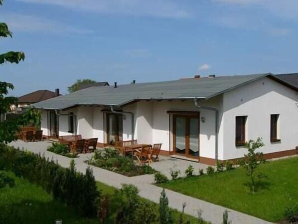 The complex, built in 2004, is located in Neuendorf on the Saaler Bodden, between Ribnitz-Damgarten and Barth. Swimming, fishing, kite-surfing and surfing opportunities are available approx. 250 metres away. Neuendorf is an ideal starting point for hikes, cycle tours and excursions. The harbour offers additional opportunities for leisure activities on the water. For fishing enthusiasts, a licence-free fishing boat is available in the harbour. The holiday home has holiday flats for 2 to 5 people. Extra beds are possible. The holiday flats are furnished in a classic and functional style. The accommodation is particularly suitable for guests who want to enjoy the countryside and appreciate peace and quiet. There is a central barbecue area for cosy get-togethers. Each guest flat also has its own furnished terrace. Guests of the holiday flat can also use the water sports facilities of the water sports centre in Saal (3 km). Bicycle hire is available on site. For our little guests there is a large playground with climbing frame, swing and spring rocker as well as a small petting zoo with donkeys, ponies, goats, rabbits and birds to watch and pet.Short descriptionOther : Non-smoking houseShort description 1Number of kitchens : 1Bedroom 1Other bedroom facilities : A cot can be provided free of charge for bedrooms.Bedroom 2Other bedroom facilities : A cot can be provided free of charge for the bedroom.Kitchen 1Other kitchen facilities : Dishwasher availableSurroundingsLeisure facilities : Boat hire, bicycle hireSports facilities in the surrounding area : Fishing, football pitch, cycling tours, riding area / riding facilities, sailingSurroundings 1Excursion possibilities : In the surrounding area you will find numerous possibilities for leisure activities. Particularly noteworthy are the bird park in Marlow, the Bodden thermal baths in Ribnitz - Damgarten, boat hire, Karl's Erlebnishof with Germany's largest farmers' market, the maritime museum in Stalsund and the zoo in Rostock. The Amber Museum in Ribnitz - Damgarten, the Vinetamuseum in Barth and the Klockenhagen Museum Village also look forward to your visit. The various steamboat trips on the Bodden and the Baltic Sea are also particularly popular. We can also organise a trip on an old Zeesen boat on request. For horse lovers there are 2 horse farms in the neighbourhood with different offers. Special highlights of the year are the Vinetafestspiele in Barth, the Zeesenbootregatta in Bodstedt, the Hansesail in Rostock and the Störtebeckerfestspiele on the island of Rügen.place description : Neuendorf is a small, quiet place on the southern coast of the Saaler Bodden between Barth and Ribnitz - Damgarten. The village has two small harbours and bathing facilities. The nature is intact and invites you to hikes and bike tours.other sports and leisure facilities : For fishing enthusiasts, a 10 hp fishing and leisure boat without a licence is available in the harbour 300 m away. The water sports centre in Saal offers our guests kite and surf courses, kite and surf lessons and equipment at a special price. You can hire motorboats (even without a 10 hp licence), rowing boats, canoes and sailing boats from the boat hire. Guest boaters welcome. You can also obtain your boating licence from Captain Peter Maass on a holiday course. For horse riding enthusiasts, contacts for riding facilities can be arranged.Garden and outdoor facilitiesRecreational facilities at the property : PlaygroundGarden equipment : Garden furniture available, barbecue, play equipment