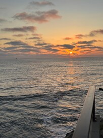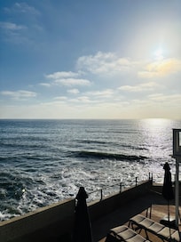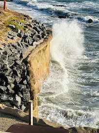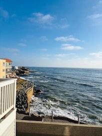 We went for a long weekend and thoroughly enjoyed ourselves in this super clean and well maintained property. The views of coast, crashing waves & open ocean from our couch could not have been more amazing. At high tide you can feel some of the waves from inside. This building is literally on the edge of the Pacific! We saw some dolphins go by and some distant spouting of whales and surfers nearby. Communications from Rick were clear & concise and he was super friendly and accommodating! This building is in a quiet residential neighborhood but walkable to a breakfast place and the sunset cliffs park within a short distance and about 3/4 mile walkable to Newport Ave & Ocean Beach with lots of great restaurants and shopping. We really enjoyed Breakfast Republic and South Beach grill. You are convenient to so many restaurants and shopping areas, airport, marinas, SeaWorld, Gaslamp district, LA Jolla & Mission Beach. Although we ate out for all our meals, everything needed was there to cook. A combo keurig with both a pot with filter and kcups. Ice maker & dishwasher in kitchen. Even had some smaller Yeti type cups. No central heat or air but 2 nice space heaters with thermostats & a box fan as well as ceiling fans in bedrooms. Bathrooms well stocked with large pump bottles of Dove shampoo & conditioner and Suave body wash in shower. Good water pressure for my thick, longish hair. A shared washer & dryer in laundry room off the patio. 4 car garage with individual garage doors with an assigned garage & opener provided for car. This is a 6 unit building owned by 1 family. All units are remodeled or being remodeled currently with all updated new kitchens, flooring and furniture. The courtyard is shared with grill, dining table w 4 chairs and a 4 piece wicker patio set w cushions. 2 units have their own large patio & deck space. This unit had an amazing view from just sitting on the couch straight down south coastal cliff line and out to open ocean. The 2 units with private patio & deck have 180° views open ocean and both North & south coast. Most of Rick's clients are repeat visitors and there is definitely good reason for this. We will definitely be back! For perspective we live on a beach on the Chesapeake Bay with wide views of dolphins from front of our home and a large channel with our boat in backyard. Just to say we are very picky about our accommodations and views when we are on vacations and this place satisfied our requirements plus!