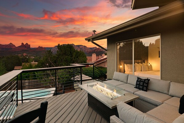 Welcome to Uptown Splash! Enjoy sweeping views of Sedona's Red Rocks from this luxury property. Lounge on the viewing deck or enjoy the 20' heated Pool & Spa. Gather around the Jumbo Firepit for warm relaxation.