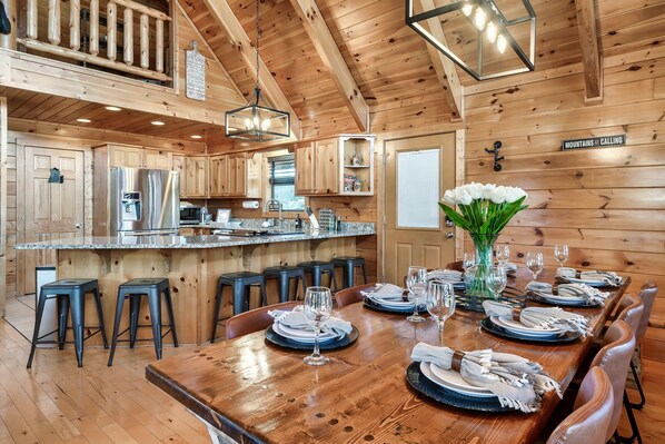 The cabin has a wrap-around deck to enjoy the mountain views, an extended lower deck for hot tub and more views. It has a game room and an infrared sauna in the lower level of the main cabin and a newly added game room and theater next to the main cabin for kids and kids at heart to relax, unwind, play, and bond. Free weights and yoga mats are also available for our fitness conscious guests. Our location is ideal for morning walks and appreciation of nature's beauty, while at night, family and guests can gather around the fire pit area to roast some marshmallows, trade stories, and just relax - weather permitting. We would love to host family vacations, family reunions, family & friends getaways, and couples getaways. Pictures are not updated yet to show the new game room and theater room but you and your family will have a great time hanging out in this space. Please read our previous guests review of the fun they had in this space.