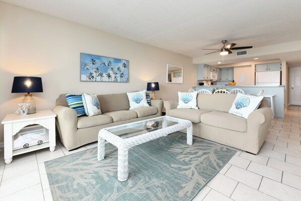 (Three): 1 King, 1 Queen, Twin over Twin Bunk, 1 Queen Sleeper Sofa in Living Room