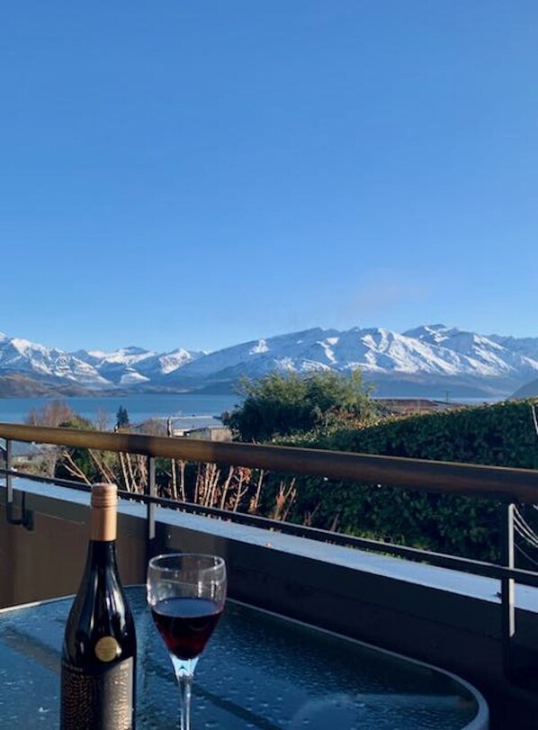 This apartment is located about a 5 minute drive from the town centre. Upon arrival we were warmly greeted by the owners and shown up to our private apartment. It was upstairs and the deck had an incredible view towards Lake Wanaka and the surrounding mountains. It was tastefully furnished and every detail taken care of. Breakfast comprised fruit, bread, yoghurt, muesli, juice all top.notch. The bed was excellent and the bathroom was beautiful with natural light flooding it from a sky light.