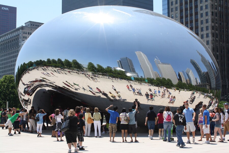 Known as 'The Bean', this stainless steel sculpture by Anish Kapoor is a must-see in Millennium Park. Its curved, reflective surface captures the city’s skyline and invites playful photo opportunities. Walk underneath to experience its kaleidoscopic reflections. The surrounding plaza offers seating and views of the park’s gardens and architecture. Accessible year-round, it’s a favorite for locals and visitors alike. Early mornings or weekdays provide quieter moments to enjoy its beauty.