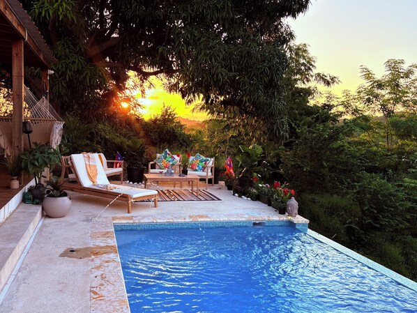 Guests have full access to the entire casita, including the private pool, terrace, and outdoor lounge areas. Feel free to use the hammock, sunbeds, and kitchen amenities at your leisure. Parking is available on-site, and the property is entirely private—no shared spaces. Check yourself in easily and enjoy the tranquility of the surroundings with complete freedom throughout your stay.