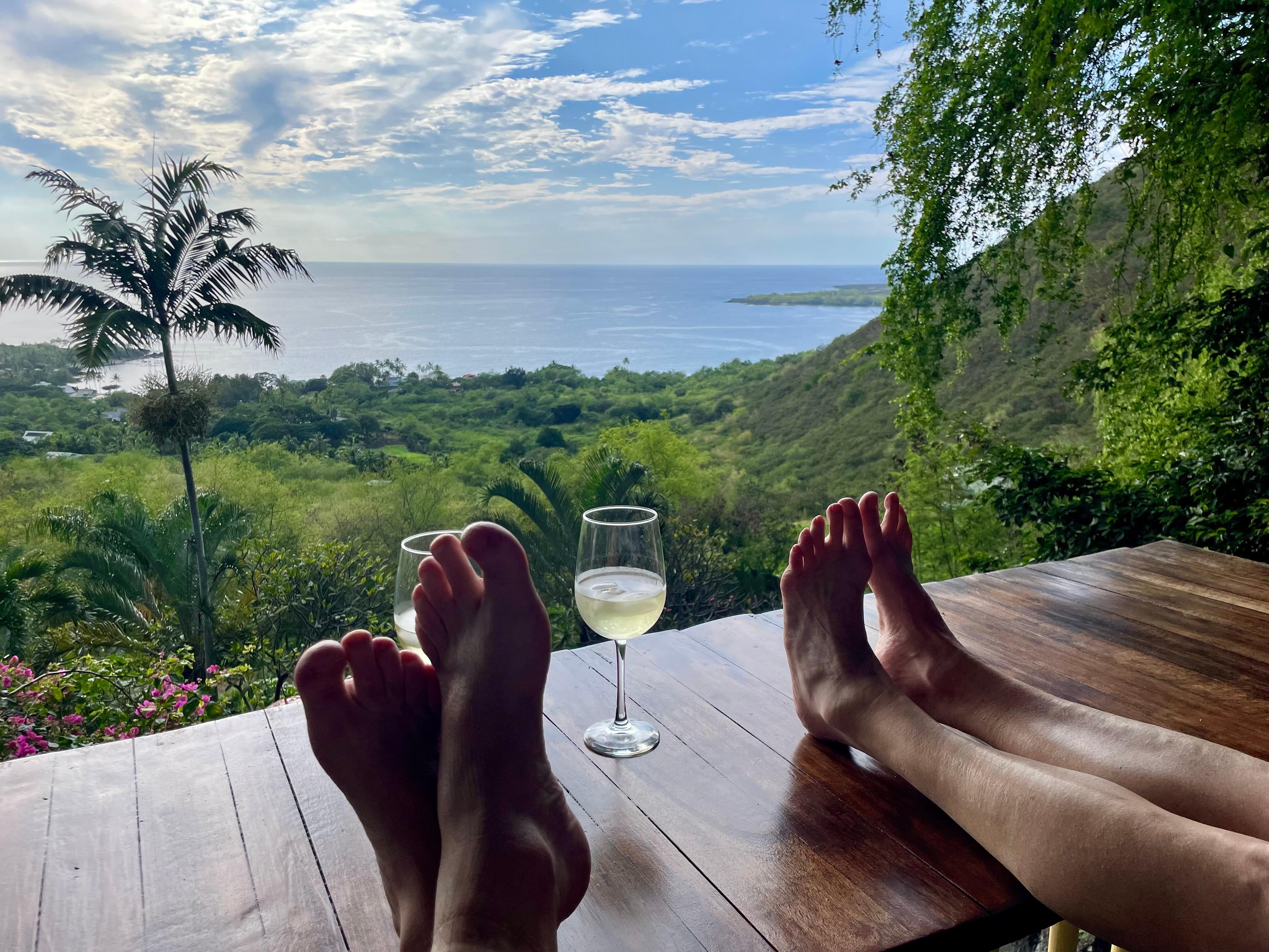 This property was unique and we're so happy to chose to stay here.Pros: The views are incredible and the outdoor living spaces were very comfortable - in particular we spent a lot of time on the high top chairs, sofa bed, and two person dining table. The kitchen was fully stocked and operational with everything we needed. The bedroom was perfectly sized and comfortable. It was so easy to access Manini Beach (you can walk). By staying in Captain Cook you have a much more "locals" experience. There was plenty of privacy. Both indoor and outdoor showers worked well. The grounds are very pretty. Internet worked well. Roofing allowed you to stay outside while it rained. Items to Be Aware Of: You'll receive visits from local wildlife (we got to see turkeys, pigs, cats, roosters, lizards, and slugs). It takes awhile to drive "up the hill" whenever you go somewhere. There is a large staircase from where you park to the property. You park on the side of the road rather than a garage/carport. There are lots of bugs; so you 100% need bug spray. No air conditioning (the fans worked well enough). The bathroom is not connected to the bedroom. The Aloha sign in the directions is small (hard to see), the better landmark is that there's a dilapidated big rig truck just before the turn.