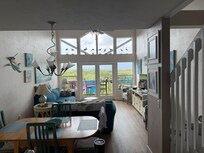 Waterfront condo with kitchen and balcony