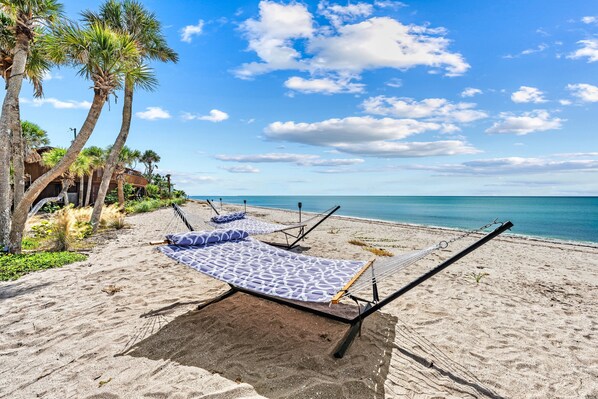 💖 Why You'll Love This Home Pelican Cottage at Manasota Beach Club blends peaceful seclusion with the rhythm of the sea. Nestled under a canopy of live oaks, this king retreat features a bright living room, dining nook for two, and a private outdoor area with dining table, chaise lounges, and a mini grill. Listen to the waves, feel the breeze, and unwind in timeless Old Florida comfort — the beach is only a few barefoot steps away.