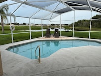 4 bedroom Villa named 'Paradise Found' is located on a lake with privacy. The lanai has a south facing heated pool with ample area for lounging around it. The pool has solar heating which is free. The pool also has gas heating as a supplement during the winter which there is an additional charge for if you want it. . There are lots of birds and other wildlife to enjoy as the property borders on a conservation area. Imagine a location like this and only 20minutes from Disney!