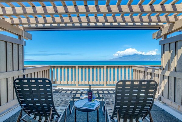 Treat yourself to this direct oceanfront tropical getaway at Kahana Sunset Resort. When you enter this beautifully remodeled 2 bedroom/2.5 bath condominium, you will be immediately captivated by the breathtaking views of the Pacific ocean. With two oceanfront lanais, it is perfect location to enjoy magical Maui sunsets, colorful rainbows and a spectacular show of humpback whales (winter months). In addition, you will find Keoni Nu'i Bay an ideal place to snorkel, swim, paddle board or just relax on the sandy beach. Kahana Sunset truly is the perfect location for your Maui vacation.