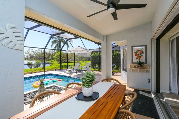 Enjoy an enhanced vacation experience at this fully renovated 3-bedroom, 2-bathroom home in Central Naples. With an Electric Heated Pool, a 29-foot covered lanai, and a spacious screened pool area of nearly 1100 sq. ft, with Outdoor Bar, TV, and BBQ — it`s the ultimate spot to have fun with your loved ones or simply relax and enjoy a quiet day! The home also features an inkjet printer (color/black & white) for your convenience, and all TVs now come with Peacock streaming for added entertainment.
