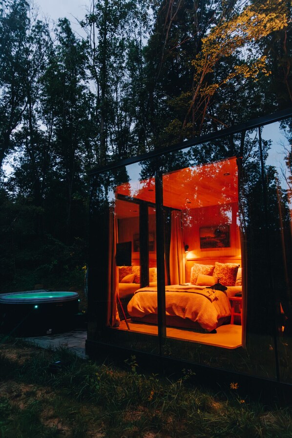 Romantic Mirrored Cabin w/ Hot Tub & Sauna on 17 Private Acres