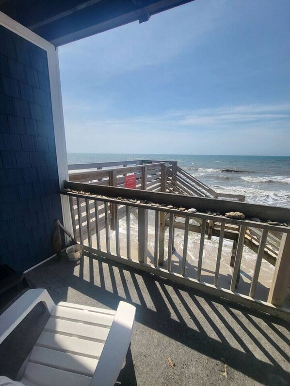 Experience the serenity of ocean views from your own private balcony at this comfortable first floor condo. Enjoy a relaxing evening with sounds of waves and a buoy bell, or step outside to feel the sand between your toes on the beach just steps away.