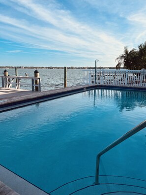 Beach & Bay! Waterfront condo with Fish/Boat Dock & Heated Pool