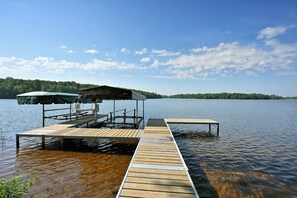 Lakefront vacation home with kitchen and patio