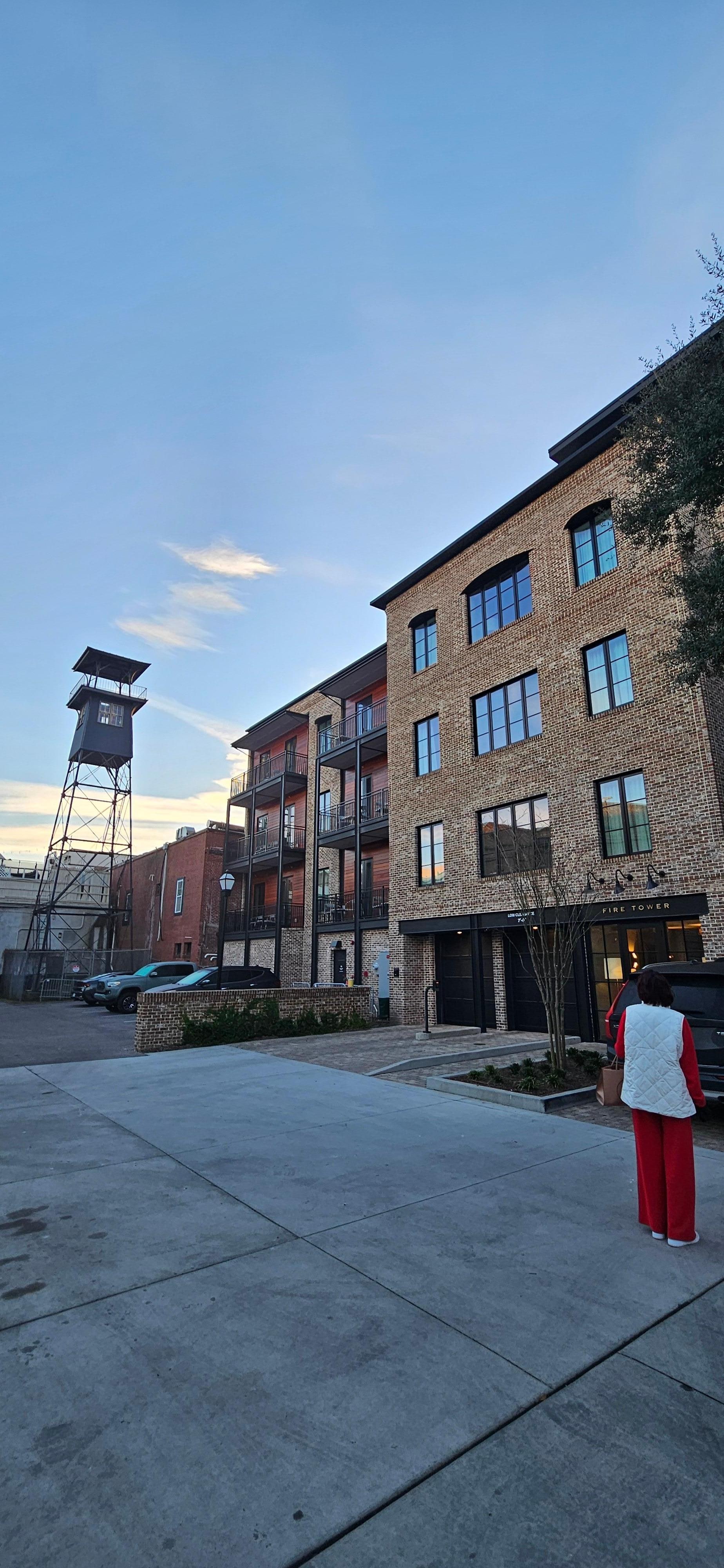 Stay in style at Fire Tower, a 2023-built condo just off King Street. This 1BR/1BA retreat features a plush king bed with en-suite, full kitchen, Smart TV, and private balcony. Enjoy modern amenities including WiFi, and off-street parking. Relax on the shared rooftop with skyline views or unwind in the courtyard and terrace. Perfectly located to explore Charleston’s dining, shops, and history.