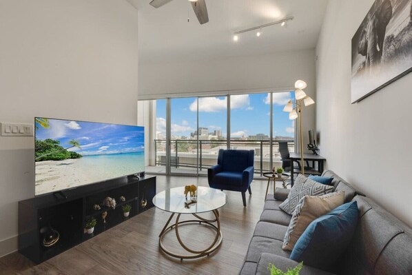 Apartment comes fully furnished with a 55 inch smart tv with access to your favorite streaming services and a 24 inch HD monitor, making it an ideal space for traveling professionals and digital nomads.