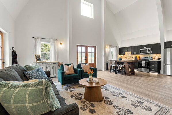 New & Modern Barn House 1 BR + BIG Loft w/ Queen Sleeper Sofa on 3 serene acres provides amenities like laundry facilities and a hot tub. Stay connected with free in-room WiFi.