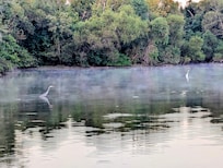 Very quiet lake in a great house. Love the rocking chairs and paddle boats and kayaks. Plenty of entertainment on the property for the whole family. Small inconveniences like fan and remote out of batteries were overlooked in midst of the rest of the fun. Would return again!