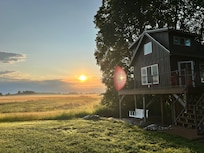 We fell in love with the property at first sight! We enjoyed the views of the rolling prairies and the vineyard/orchard - we saw deer running in the prairie on occasion! Sleeping accommodations were perfect for the 3 of us, the bed and sofa sleeper were very comfy! The kitchenette had everything we needed to cook up simple meals and we ehoyed our coffee from the deck chairs and chair swing outdoors! There are plenty of seating options to relax alone or gather and chat up on the deck or under the treehouse. We loved the outdoor shower. The outhouse is not too far from the treehouse. Everything was very clean, cute and cozy! The owners really have made the property a great place to stay and feel secluded from the hustle and bustle of daily life with all the amenities you need to feel right at home- they were very attentive to any questions we had during our stay. We would love to stay here again!